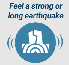 DROP COVER HOLD ON – GO UP When you are near the shore and feel a strong ground shaking that lasts a long time, drop, cover and hold on until the shaking stops. If you are on the coast, the earthquake may have caused a tsunami nearby which could arrive at your location in as little as 5-10 minutes. Go immediately to higher ground or inland (avoiding river valleys). If you are in a tsunami zone marked by signs, follow posted signs to a safe area.